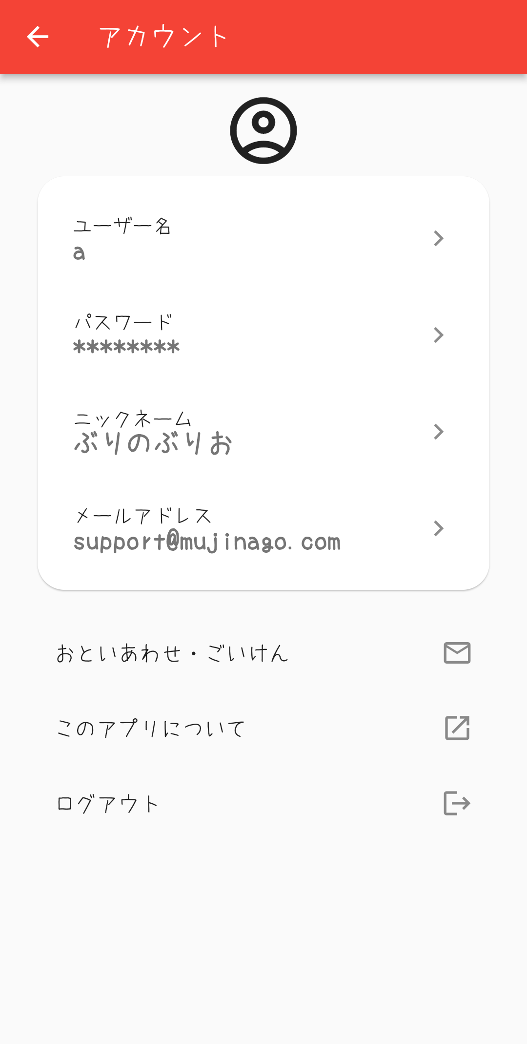 アカウントにメールアドレスをとうろくしているばあいは、とうろくしたメールアドレスから「support@mujinago.com」までメールでれんらくしてください。