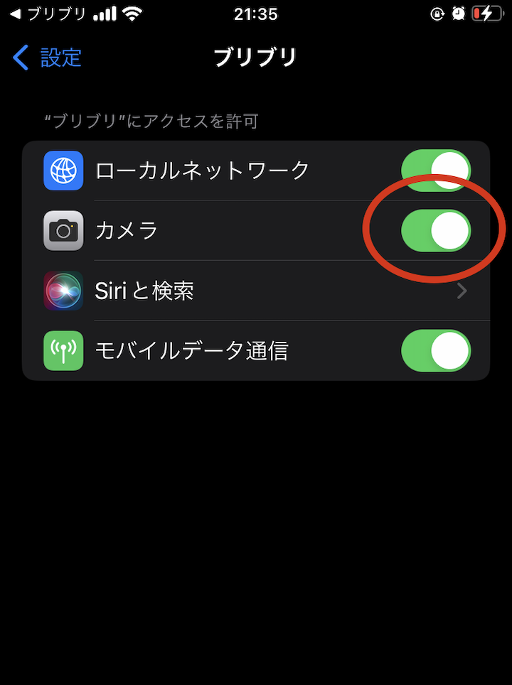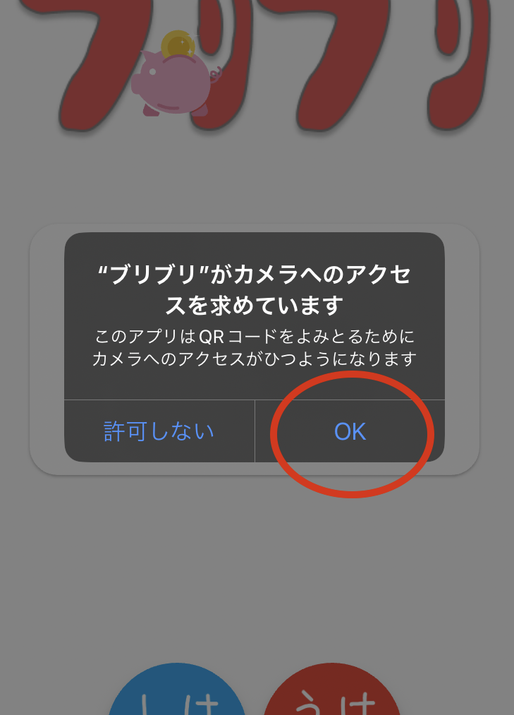 3. はじめてりようされるばあいは、ブリブリアプリがスマートフォンのカメラにアクセスができるようにせっていします