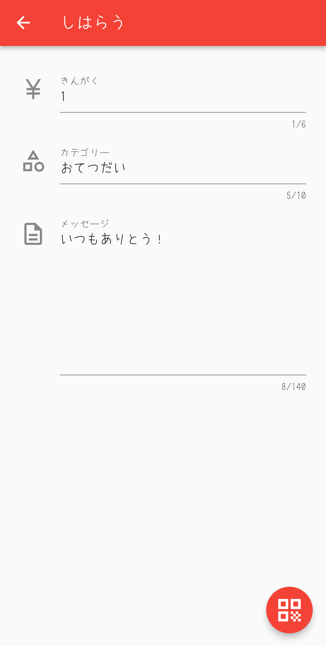3. きんがくをにゅうりょくして、がめんのみぎしたの「QRコードのマーク」ボタンをおします